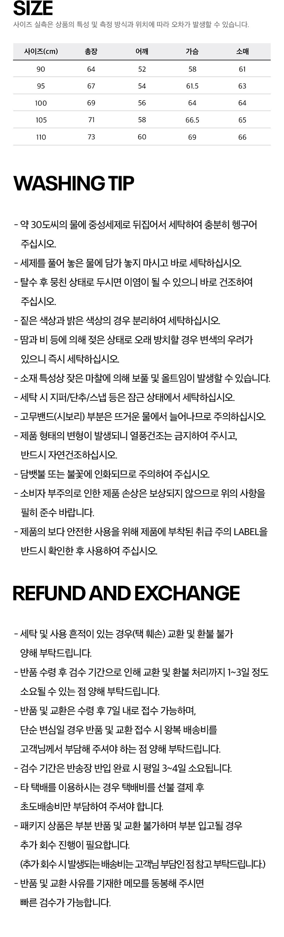 | 배송/교환/반품정보 |